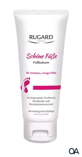 Rugard Schöne Füße Fußbalsam mit Panthenol, Sheabutter und Avocadoöl spendet Feuchtigkeit, regeneriert und pflegt die Füße geschmeidig weich. Erfrischende und regenerierende Feuchtigkeitspflege für trockene, rissige Füße.