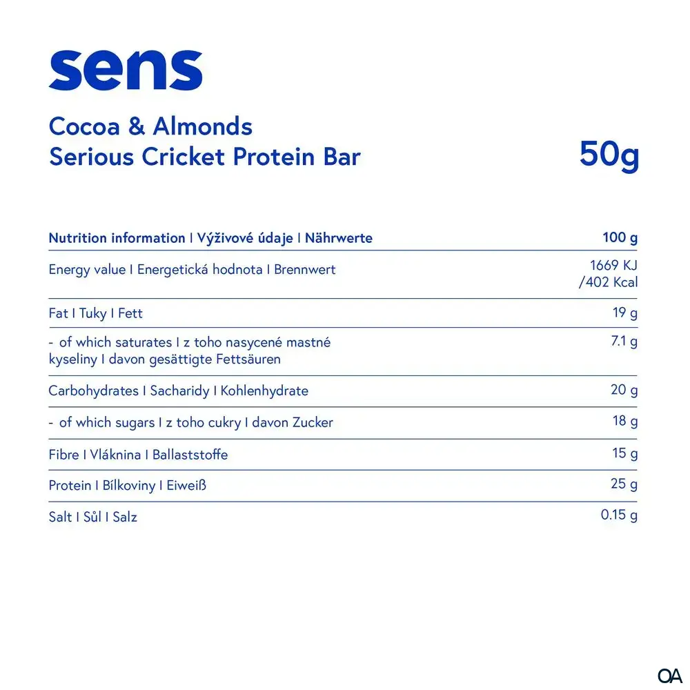 SENS Serious Proteinriegel mit Grillenmehl - Kakao & Mandel