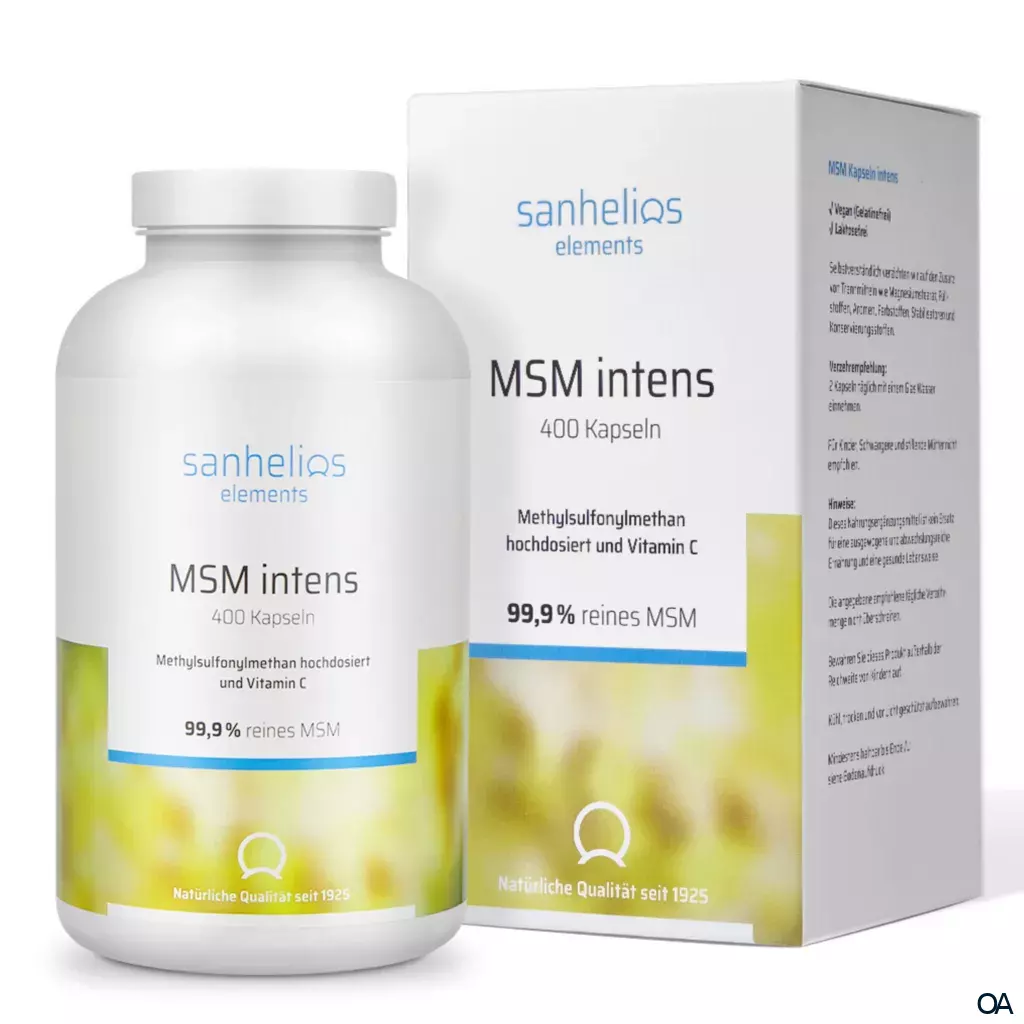 Viele denken bei Schwefel zuerst an den unangenehmen Geruch. Dabei ist Schwefel einer der häufigsten Mineralstoffe, die im Körper auftreten. Vor allem in Haut, Muskeln und Knochen spielt Schwefel eine wichtige Rolle. Der Baustoff Schwefel ist zum Beispiel an der Bildung von Aminosäuren, Hormonen und Enzymen beteiligt. Mit MSM intens und den 99,9% reinem Methylsulfonylmethan führen Sie dem Körper hochdosierten Schwefel zu. Außerdem enthält MSM intens Vitamin C. Das trägt zur normalen Kollagenbildung bei und ist wichtig für die normale Funktion von Knorpel und Knochen. Ergänzen Sie Ihre Nahrung mit MSM intens, damit Ihr Körper für die täglichen Herausforderungen des Lebens gut gewappnet ist. MSM intens enthält neben dem hochdosierten Methylsulfonylmethan Vitamin C. Es ist vegan (gelantinefrei), laktosefrei, gut verträglich und leicht zu dosieren. MSM - METHYLSULFONYLMETHAN Methylsulfonylmethan gehört zu den organischen Schwefelverbindungen, den sogenannten Sulfonen, und ist eine weisse, geruchlose, etwas bitter schmeckende, kristalline Substanz, die 34% Schwefel enthält. Im menschlichen Körper, bei Tieren und in verschiedenen Pflanzen kommt diese Schwefelverbindung vor und hat dort, wie Schwefel grundsätzlich, viele wichtige Funktionen. Hilft bei der Herstellung von Hormonen Hilft bei der Herstellung von Enzymen Hilft bei der Herstellung von Aminosäuren Beeinflusst die Struktur der Enzyme und Eiweiße Methylsulfonylmethan hat hierbei den Vorteil das es eine Schwefelverbindung ist die der Körper besonders gut verarbeiten kann. VITAMIN C unterstützt die Kollagenbildung für eine normale Knorpel- und Knochenfunktion des Körpers und leistet einen wichtigen Beitrag zu einer normalen Funktion des Immunsystems sowie zum Schutz der Zellen vor oxidativem Stress. Nahrungsergänzungsmittel mit Methylsulfonylmethan (MSM) und Vitamin C.