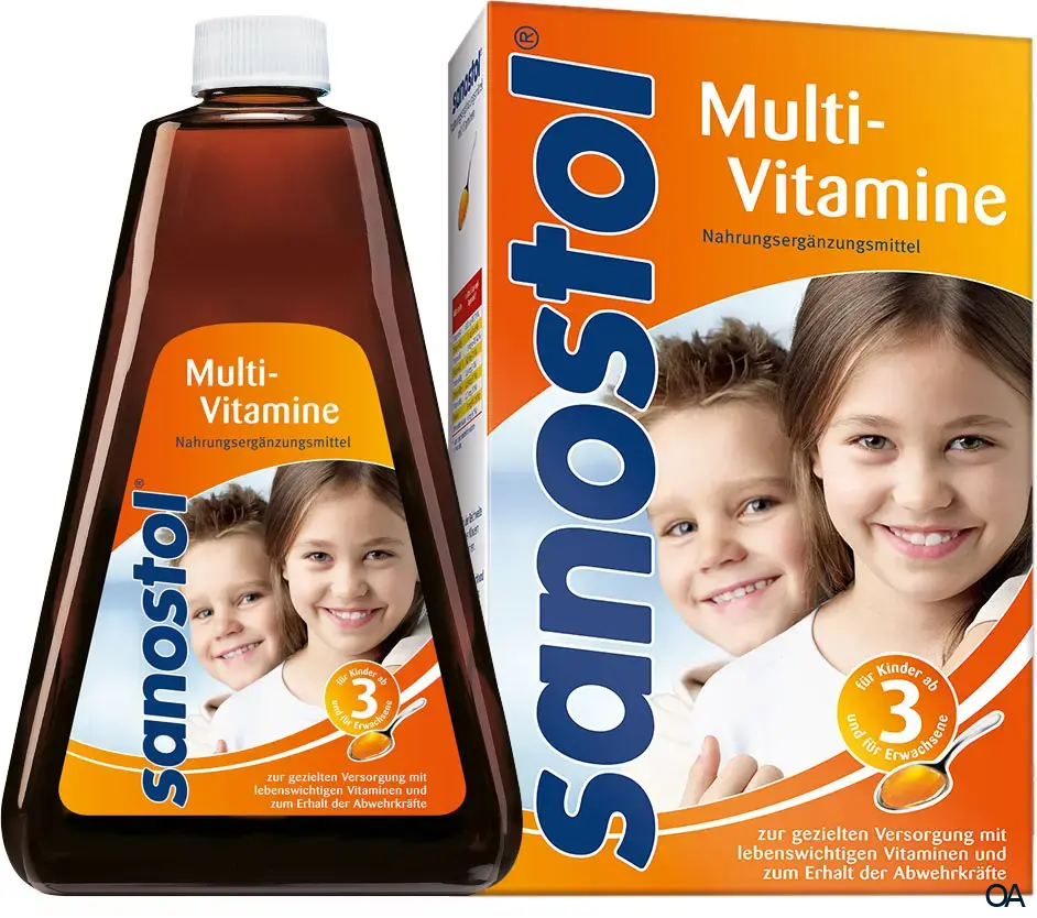 Sanostol® ist ein Nahrungsergänzungsmittel und als Multivitamin-Saft oder fruchtig-prickelnde Lutschtablette erhältlich. Mit seiner ausgewogenen Zusammensetzung aus wichtigen Vitaminen (u.a. A, D, B6 und Vitamin C) trägt Sanostol® zum Erhalt der Abwehrkräfte und eines gesunden Immunsystems bei. Und das vor allem in besonderen Lebenssituationen (wie z.B. Schulstart, stressigen Zeiten...) oder in Jahreszeiten (wie z.B. im Herbst/Winter), in denen trotz ausgewogener Ernährung eine ausreichende Vitaminzufuhr nicht gewährleistet werden kann. Mit Sanostol® kann die Ernährung täglich gezielt ergänzt werden und das auf eine Art und Weise, die Kindern aber auch Erwachsenen gut schmeckt.