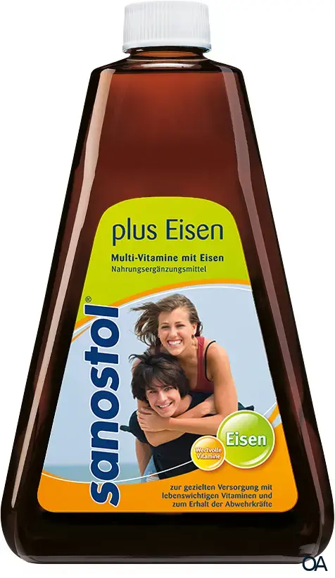 - Hinweise: Sanostol® plus Eisen enthält Süßungsmittel (Sorbit, Acesulfam-K). Kann bei übermäßigem Verzehr abführend wirken.
