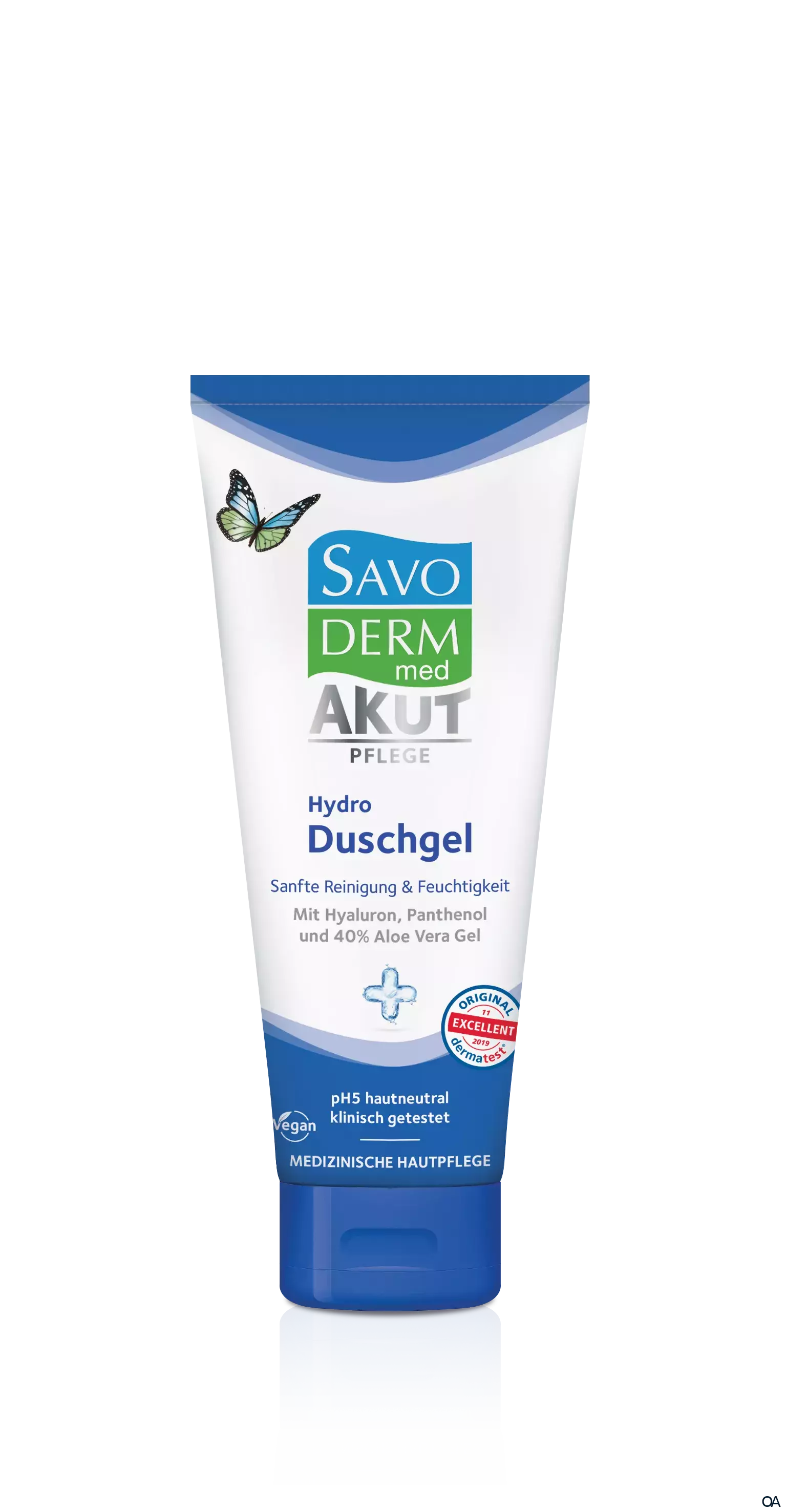 Savoderm med Akut Hydro Duschgel spendet eine sanfte Reinigung & Feuchtigkeit. Mit den Feuchtigkeitsspendern Hyaluron, Panthenol und hochdosiertem 40% Aloe Vera Gel gleicht einen akuten Feuchtigkeitsmangel der Haut aus. Es reinigt mild, pflegt und erfrischt die Haut nachhaltig.