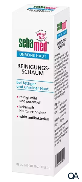 sebamed UNREINE HAUT Reinigungsschaum reinigt die Haut porentief und schonend zugleich. Der Wirkstoff Montaline C40 bekämpft Bakterien auf der Haut und hilft, die Bildung neuer Pickel und Mitesser zu verhindern. Der milde Schaum mit dem pH-Wert 5,5 entfernt sanft und gründlich überschüssiges Fett, Schmutz und lose Hautzellen. Der Pflegekomplex mit Panthenol fördert die Regeneration gereizter oder entzündeter Haut. Die Haut wirkt glatter und geschmeidiger. Die Wirksamkeit gegen Pickel und die sehr gute Hautverträglichkeit sind dermatologisch-klinisch bestätigt.