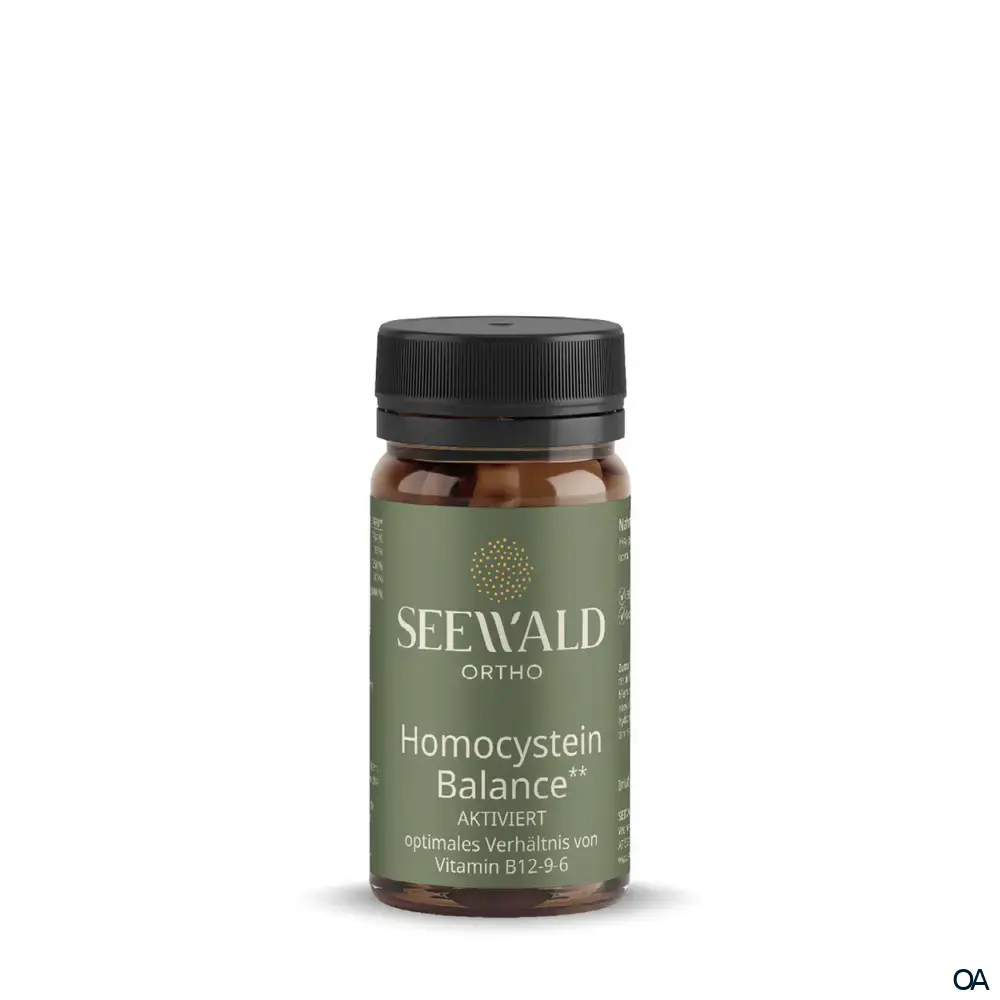 Die Seewald Ortho Homocystein Balance AKTIVIERT Kapseln sind ein Nahrungsergänzungsmittel mit Folsäure, Vitamin B6 und B12 in einem idealen Verhältnis als Beitrag zu einem normalen Homocystein-Stoffwechsel.