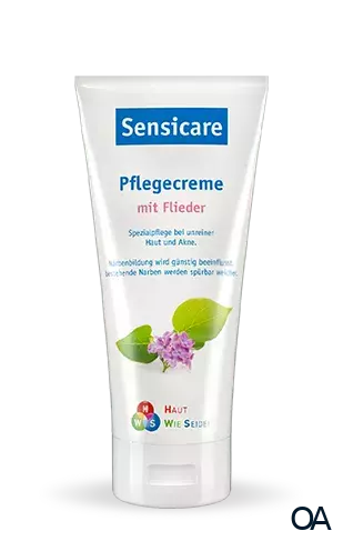 Die Sensicare Pflegecreme mit Flieder versorgt die Haut mit Feuchtigkeit, bekämpft Akne verursachende Bakterien, reguliert die Talgproduktion. Die Narbenbildung wird günstig beeinflusst und bestehende Narben werden spürbar weicher. Hautentzündungen und Hautrötungen werden ebenfalls reduziert.