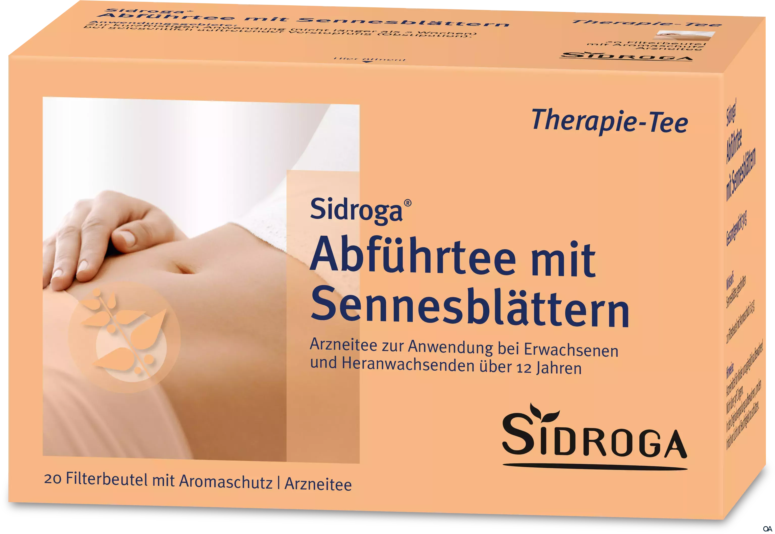 - Sidroga Abführtee mit Sennesblättern ist ein pflanzliches, stimulierendes Abführmittel. Sidroga Abführtee mit Sennesblättern wird kurzfristig (nicht länger als 2 Wochen) bei gelegentlich auftretender Verstopfung (Obstipation) angewendet.