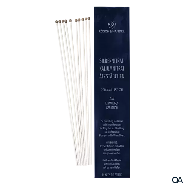 Silbernitrat-Kaliumnitrat Ätzstäbchen 50% dienen zur Entfernung von überschießenden Gewebswucherungen; Zur Blutstillung bei kleinen oberflächlichen Wunden; Zur Entfernung von Nabelschnurresten; Zur Anwendung im gynäkologischen Bereich.