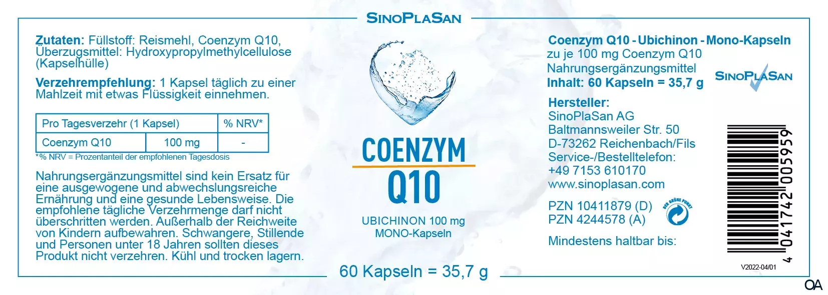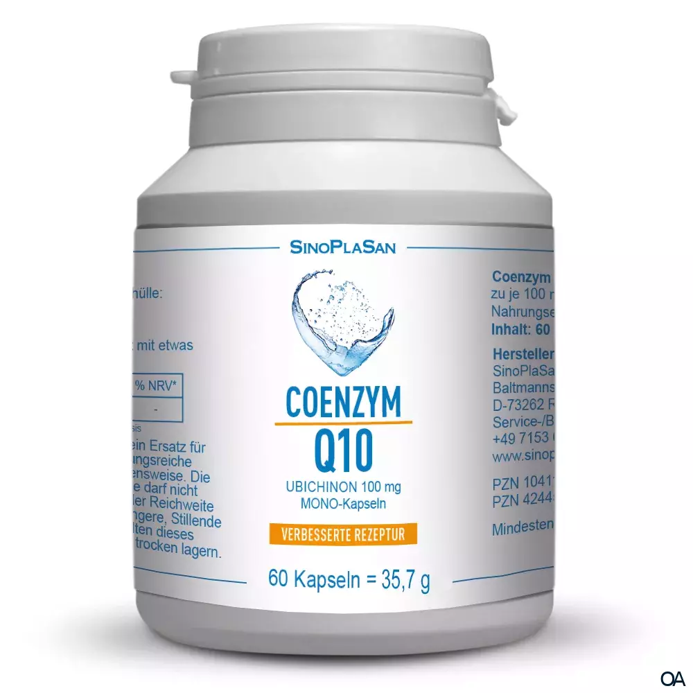 Die SinoPlaSan Coenzym Q10 100 mg MONO Kapseln sind ein Nahrungsergänzungsmittel mit Coenzym Q10, das wird aus Hefefermentation gewonnen und liefert pro Kapsel 100 mg des Coenzyms.