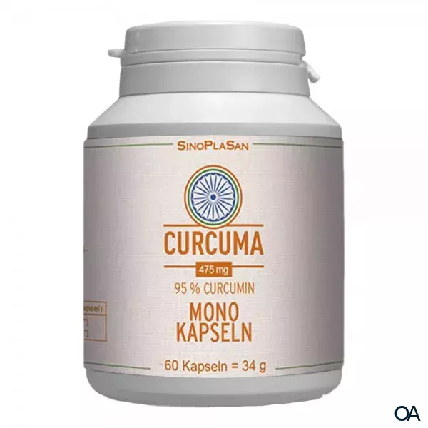 Die SinoPlaSan Curcuma Mono Kapseln sind ein Nahrungsergänzungsmittel mit einem 95%igen Curcumin-Anteil. Das bedeutet, dass in jeder Kapsel 475 mg Curcuma und davon 451,25 mg Curcumin enthalten sind.