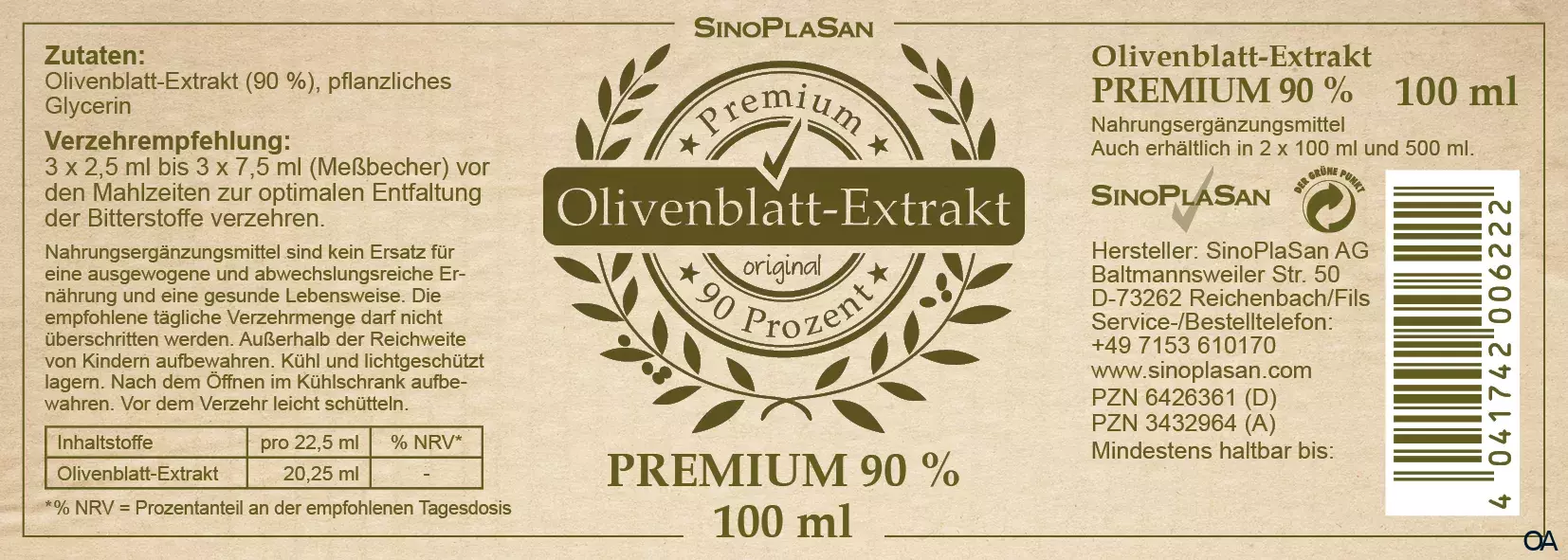 - Zusammensetzung max. Tagesdosis (22,5 ml): 20,25 ml Olivenblatt-Extrakt.