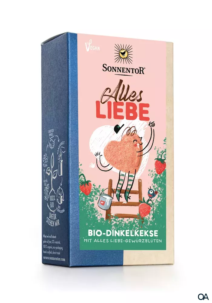 Die Sonnentor Alles Liebe Kekse sind Bio-Dinkelkekse mit Alles Liebe-Gewürzblüten und ätherischem Zitronenöl.