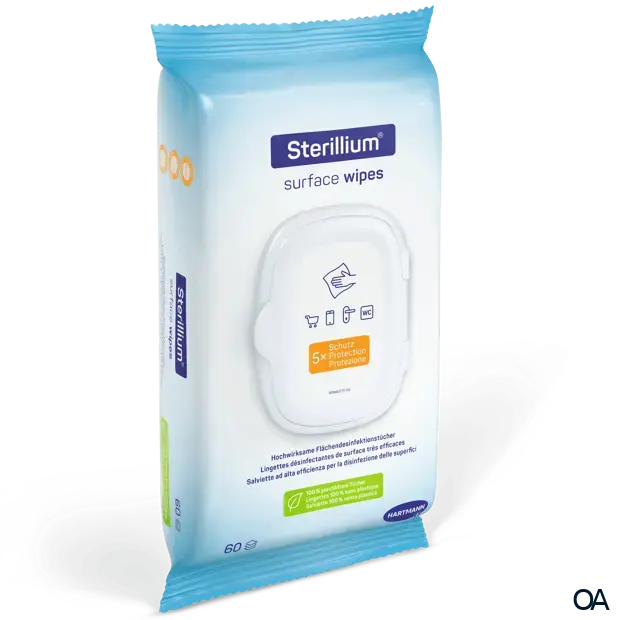- Sterillium® surface wipes sind alkoholische, gebrauchsfertige Desinfektionstücher zur Desinfektion von Oberflächen im handlichen Flowpack. Mit der speziellen Formulierung sind sie optimal zur Schnelldesinfektion empfindlicher Oberflächen, wie z.B. Smartphone-Displays, Monitore, oder Acrylglas geeignet. Sterillium® surface wipes können überall dort angewendet werden, wo außerhalb des medizinischen Umfeldes, eine Oberflächendesinfektion notwendig ist, z.B. bei der Eindämmung von Krankheitserregern zu Hause oder der häuslichen Pflege.