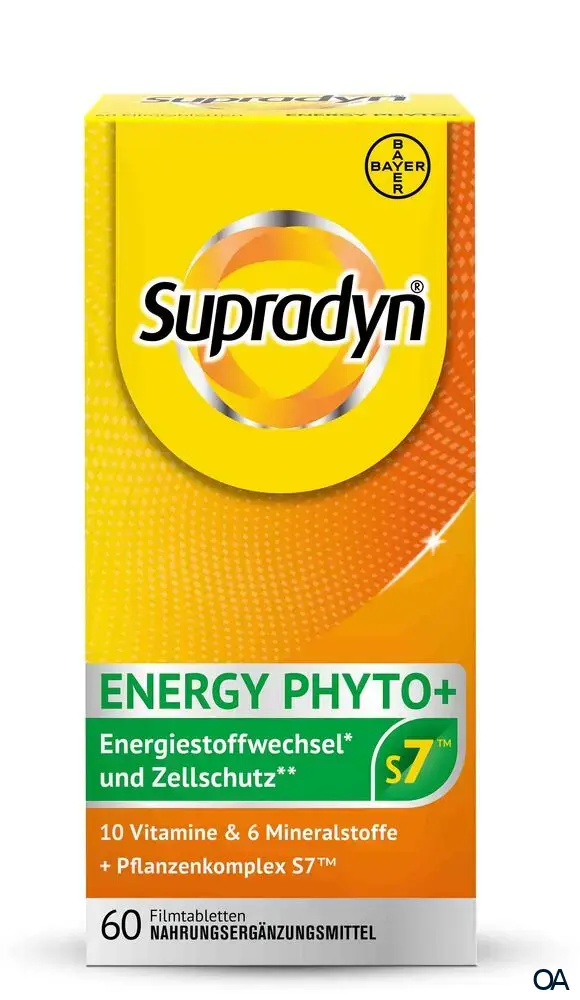 Die Supradyn® ENERGY PHYTO+ Filmtabletten sind ein Nahrungsergänzungsmittel mit 10 Vitaminen und 6 Mineralstoffen sowie dem S7™ Pflanzenkomplex - aus einer einzigartigen Mischung aus Pflanzen und Pflanzenextrakten, reich an Polyphenole.
