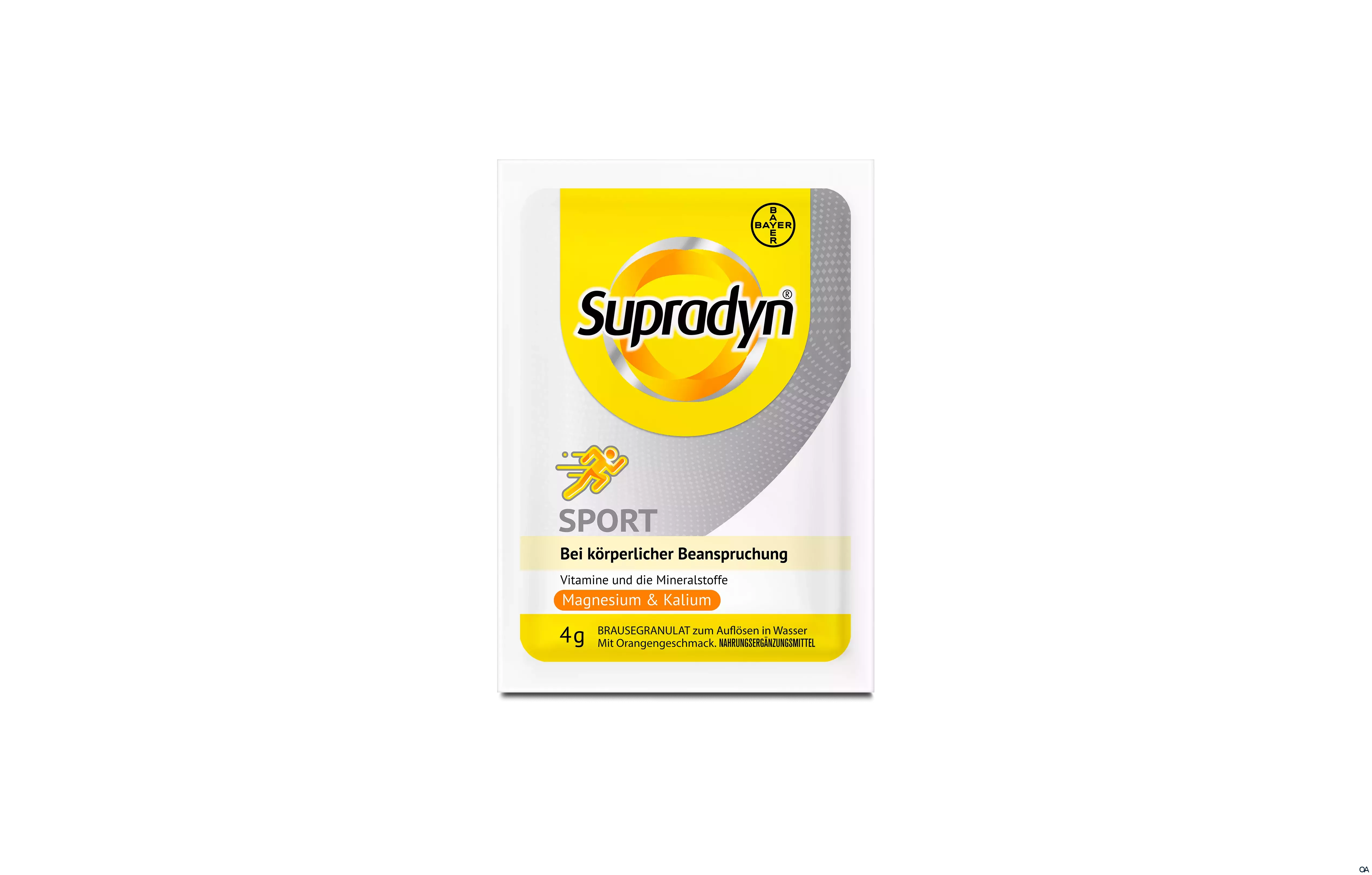 Das Supradyn® SPORT Brausegranulat ist ein Nahrungsergänzungsmittel mit einer Mikronährstoff-Kombination zur Unterstützung von Körper und Muskulatur bei Sport und körperlicher Anstrengung. Für volle Leistung, Ausdauer und Regeneration.