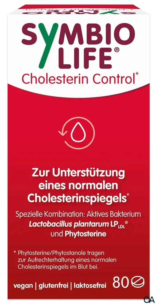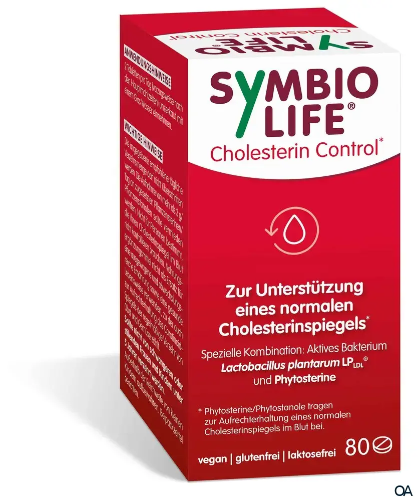 SymbioLife® Cholesterin Control* ist ein Nahrungsergänzungsmittel und enthält das aktive Bakterium Lactobacillus plantarum LPLDL® und Phytosterine, welche zur Aufrechterhaltung eines normalen Cholesterinspiegels im Blut beitragen.*