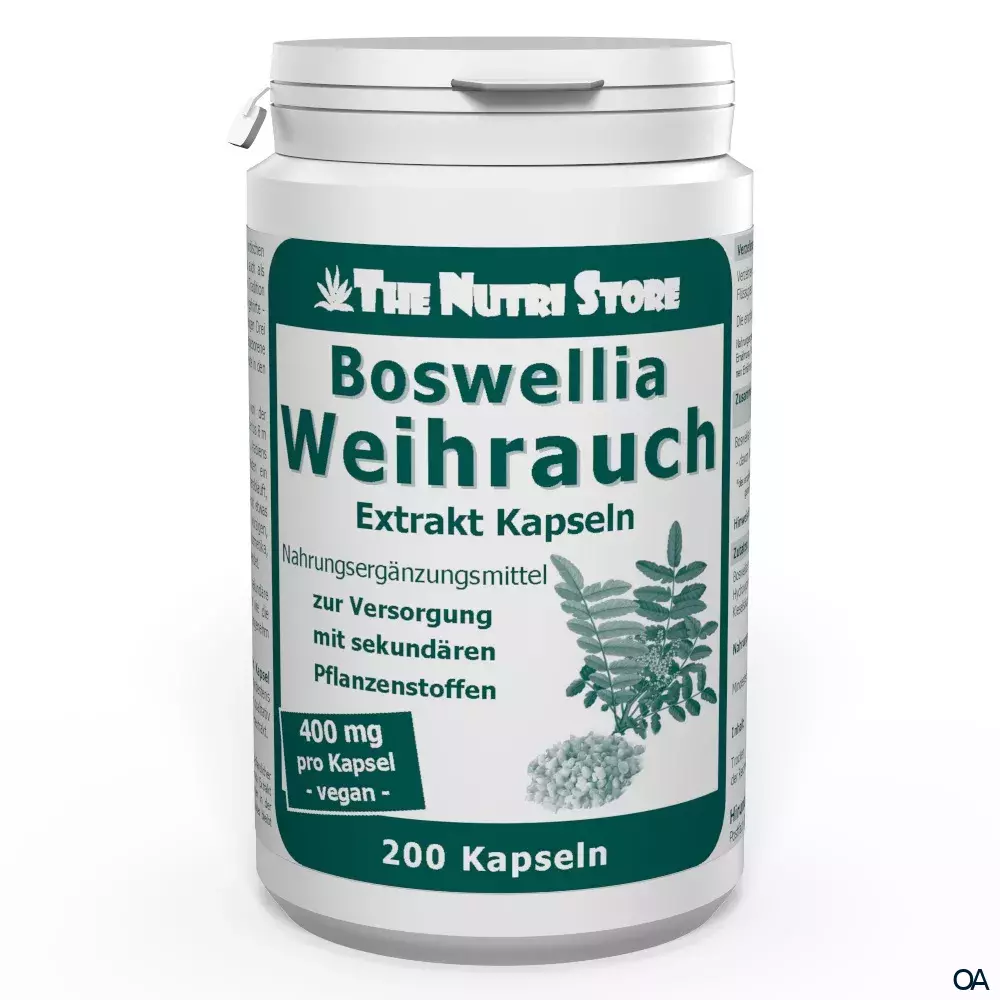 - Zutaten: Boswellia serrata Extrakt (auf mind. 68 % Boswelliasäuren standardisiert), Hydroxypropylmethylcellulose (Kapselhülle), Maisstärke, Kieselsäure, Trennmittel Magnesiumsalze von Speisefettsäuren.