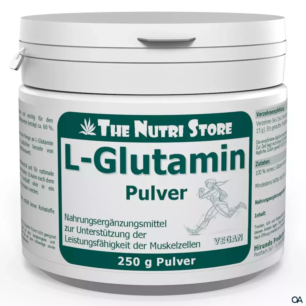 The Nutri Store L-Glutamin Pulver ist ein Nahrungsergänzungsmittel zur Unterstützung der Leistungsfähigkeit der Muskelzellen. L-Glutamin Pulver ist geschmacksneutral und für optimale Löslichkeit und Aufnahme feinstvermahlen.