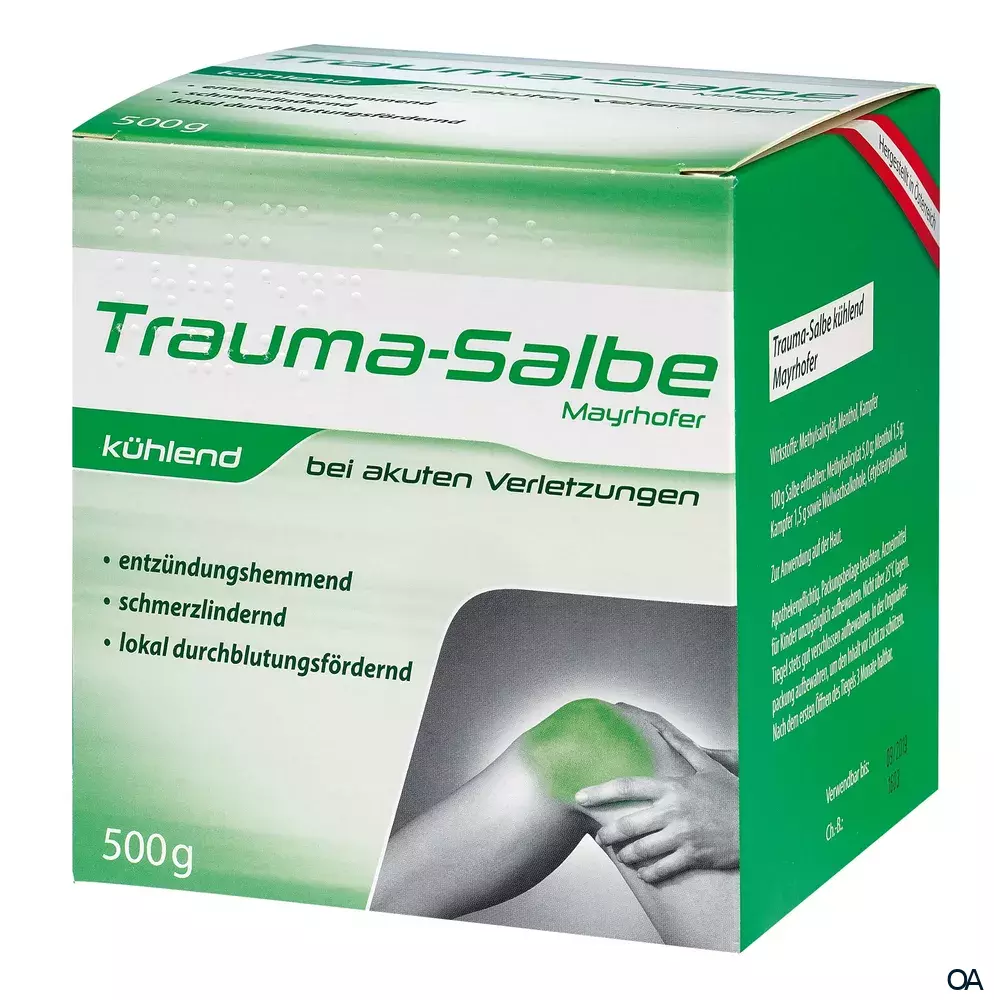 Trauma-Salbe kühlend Mayrhofer ist für die lokale Behandlung von Schmerzen bei akuten Verletzungen des aktiven Bewegungsapparates geeignet. Es wird eine rasche Schmerzlinderung und Muskelentspannung bei gleichzeitiger Kühlung erreicht.
