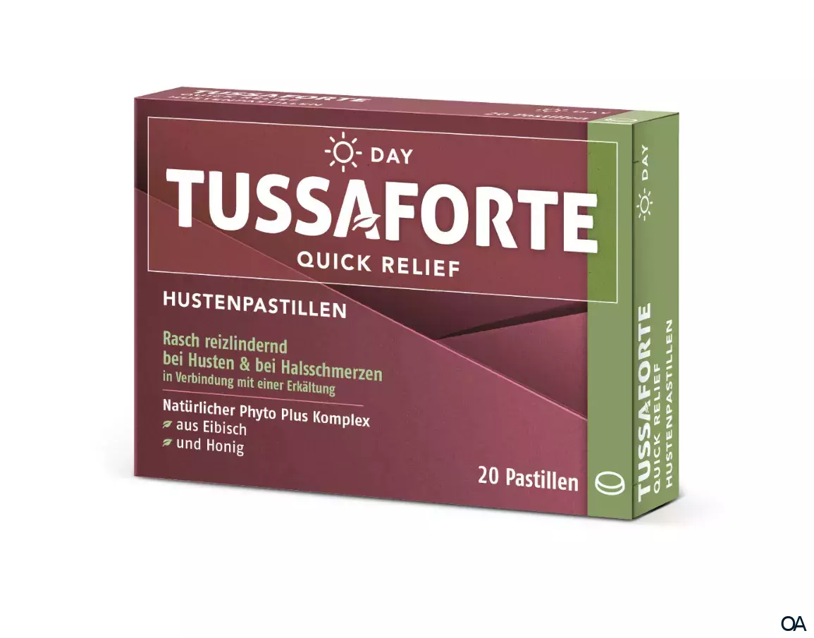 Tussaforte Quick Relief DAY Hustenpastillen mit einem natürlichen Phyto Plus Komplex aus Eibisch und Honig. Wirken rasch reizlindernd bei Husten und Halsschmerzen in Verbindung mit einer Erkältung.