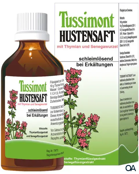 Die Inhaltsstoffe des Thymian unterstützen und ergänzen die Wirkung und Wirksamkeit der schleimlösenden Komponente der Senegawurzel. Dadurch ist der TUSSIMONT HUSTENSAFT besonders effektiv bei der Behandlung von Atemwegserkrankungen mit zähem Schleim und produktivem Husten.