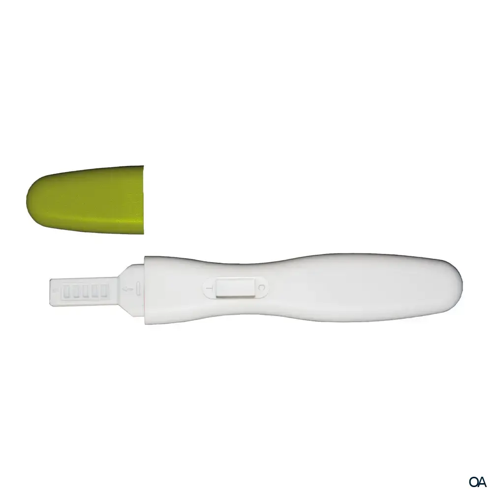 Der Schwangerschaftstest von cyclotest ist ein selbstablaufender immunologischer Test zur Feststellung des Hormons hCG (humanes Choriongonadotropin). Der Urintest ist einfach und zu jeder Tageszeit anwendbar. Der Schwangerschaftstest ist positiv ab einer Konzentration von 25 mIU/ml.