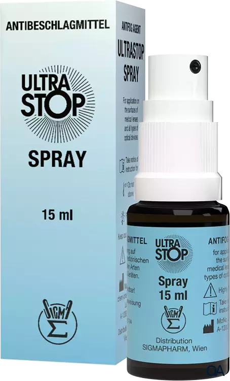 Die besondere Eigenschaft von Ultrastop besteht darin, ein Beschlagen der Oberflächen von Optiken zuverlässig zu verhindern. Oberflächenaktive Substanzen in einer speziellen Kombination bilden an den behandelten Oberflächen eine absolut klare und transparente Schicht aus. Dieser extrem dünne Film bewirkt, dass eine Tröpfchenbildung und damit das Beschlagen der Oberfläche durch kondensierten Wasserdampf verhindert wird.