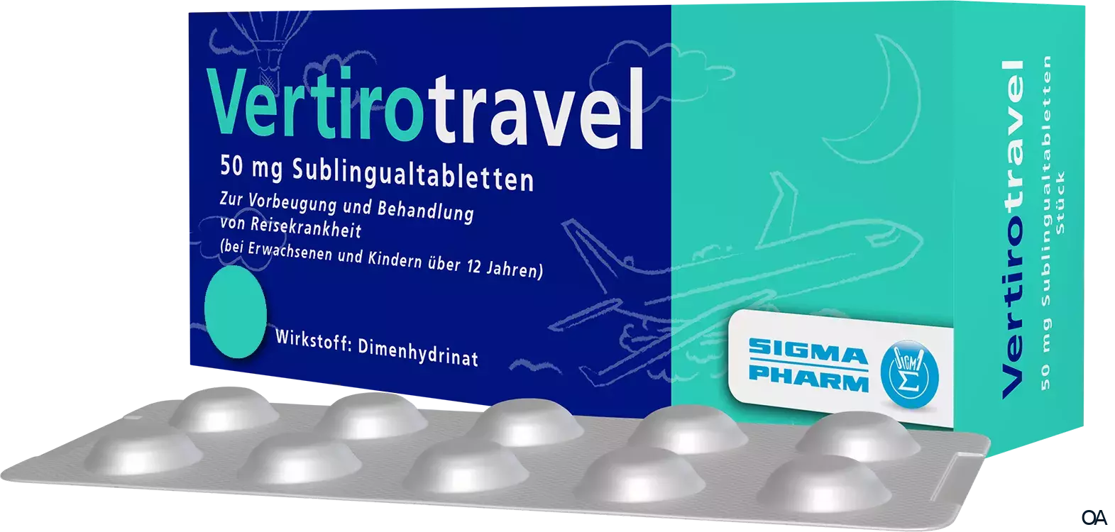 Die VERTIROTRAVEL 50 mg Sublingualtabletten sind ein wirksames Arzneimittel zur Vorbeugung und Behandlung von Reisekrankheit. Der Wirkstoff Dimenhydrinat wirkt gegen Übelkeit, Erbrechen und Schwindel.