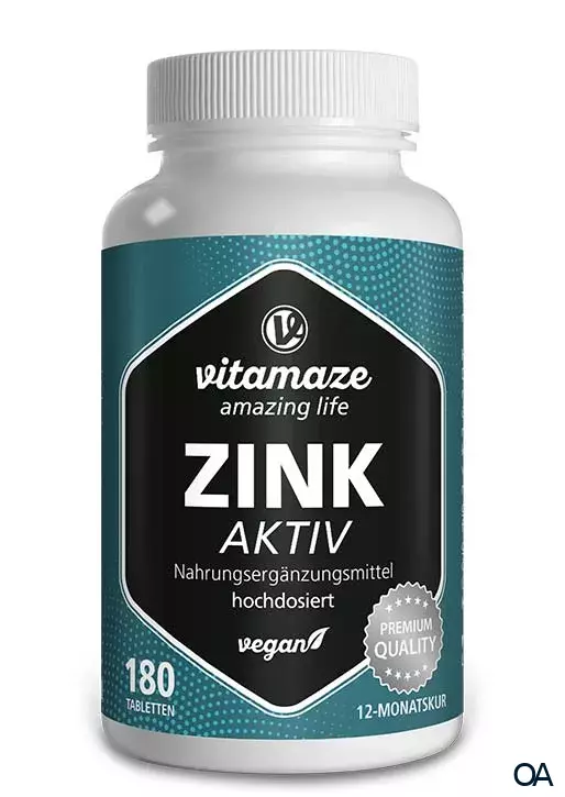 Vitamaze Zink aktiv hochdosiert Tabletten sind ein Nahrungsergänzungsmittel mit dem Spurenelement Zink. Dieses dient zur Unterstützung für ein normales Immunsystem, eine normale Knochenfunktion und für eine normale Sehkraft.
