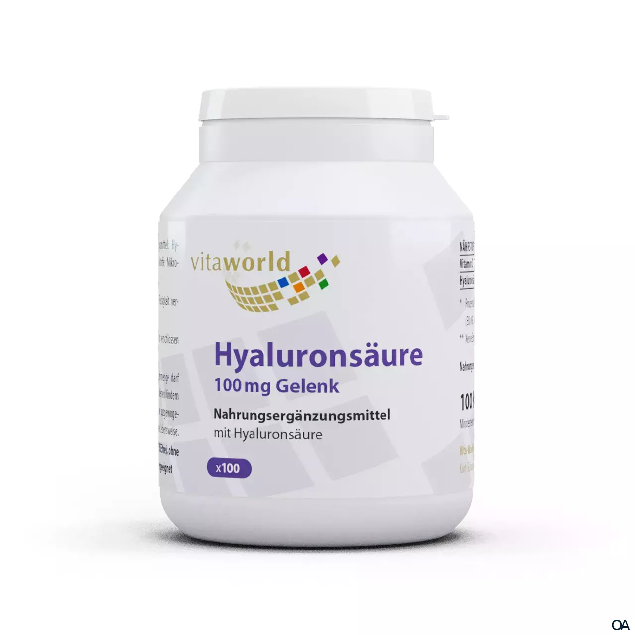 Die Vitaworld Hyaluronsäure 100 mg Gelenk Kapseln sind ein Nahrungsergänzungsmittel mit Hyaluronsäure pflanzlichen Ursprungs. Wichtiger Bestandteil des Knorpels und der Gelenke, das enthaltene Vitamin C unterstützt die normale Kollagenbildung.