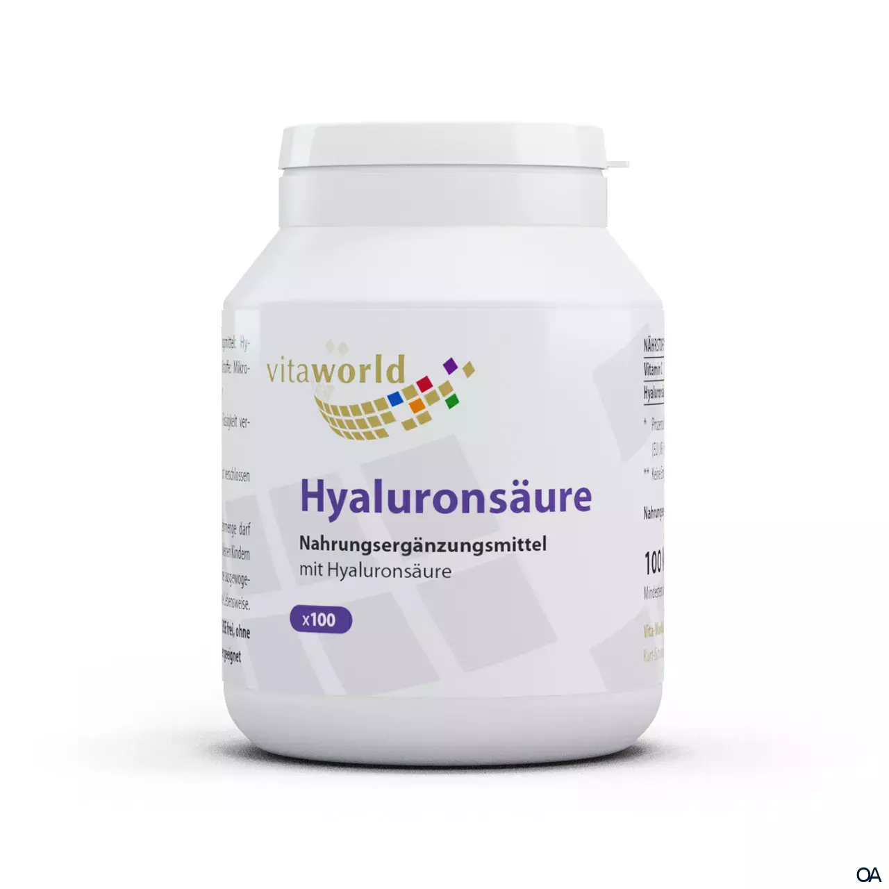 Die Vitaworld Hyaluronsäure 100 mg Kapseln sind ein Nahrungsergänzungsmittel mit Hyaluronsäure aus pflanzlichem Ursprung mit 100 mg Hyaluronsäure und 200 mg Vitamin C pro Kapsel.