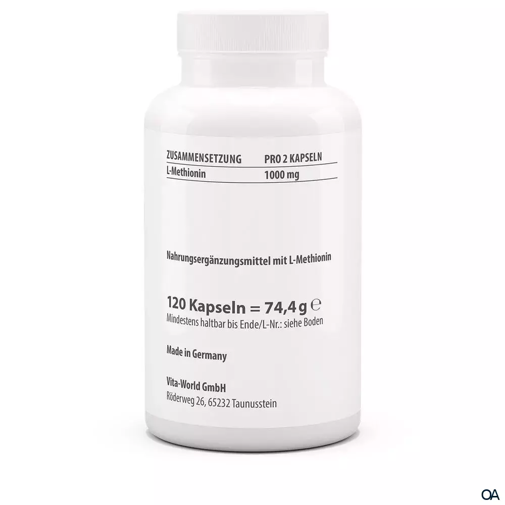 - Zutaten: 80,6 % L-Methionin, Überzugsmittel: Hydroxypropylmethylcellulose (pflanzliche Kapselhülle).