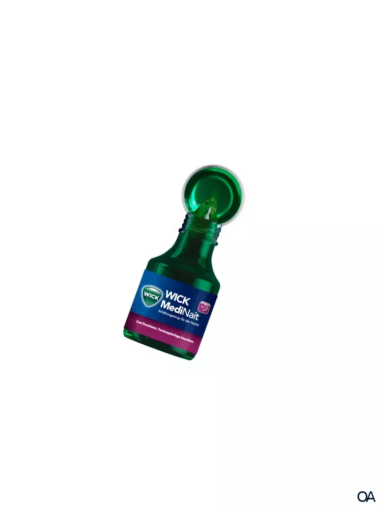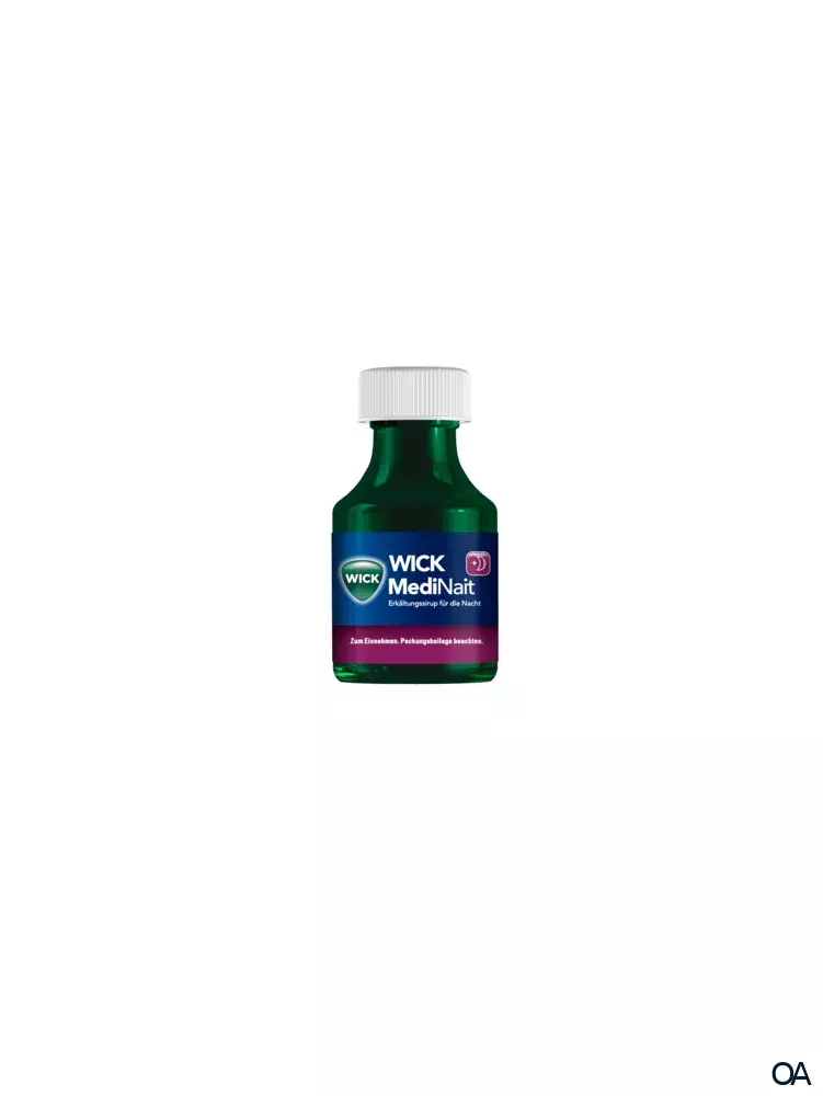 WICK MediNait Erkältungssirup wird angewendet zur symptomatischen Behandlung von gemeinsam auftretenden Beschwerden wie Kopf-, Glieder- oder Halsschmerzen, Fieber, Schnupfen und Reizhusten infolge einer Erkältung oder eines grippalen Infektes bei Erwachsenen und Jugendlichen ab 16 Jahren.
