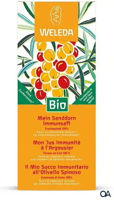 Unterstützen Sie Ihre Widerstandskraft mit dem köstlichen Sanddorn Immunsaft von Weleda. Reich an Vitamin C und wertvollen Pflanzenstoffen. Ideal für die ganze Familie!