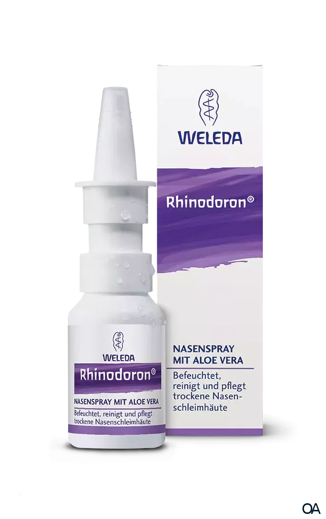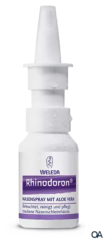 Die isotone Kochsalzlösung in Kombination mit dem Feuchtigkeit spendenden Gel der Wüstenpflanze Aloe vera verhindert das Austrocknen der Nasenschleimhaut und erleichtert bei akutem Schnupfen den Abfluss des zähen Sekrets. Die Nasenschleimhaut wird befeuchtet und unangenehme, krustige Beläge in der Nase bilden sich zurück. Dadurch erhalten die Flimmerhärchen ihre Beweglichkeit zurück und die natürliche Reinigungskraft der Nase wird wiederhergestellt. Rhinodoron® Nasenspray beugt auch trockenen Nasenschleimhäuten auf Flugreisen oder in klimatisierten Räumen vor. Es kann über einen längeren Zeitraum täglich angewendet werden.