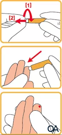 • kein umständliches Hantieren mit einer Stechhilfe nötig