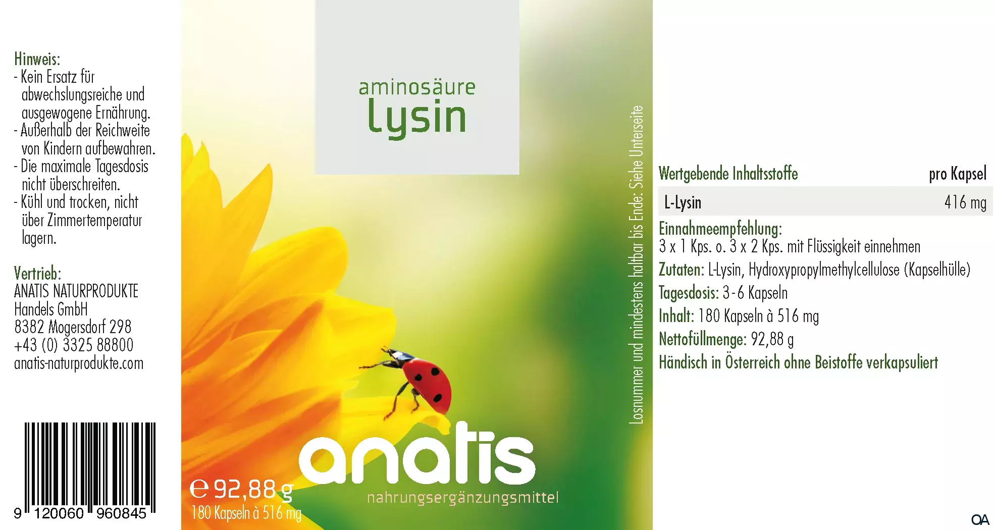 - Wertgebende Inhaltsstoffe pro Kapsel: L-Lysin 416 mg
