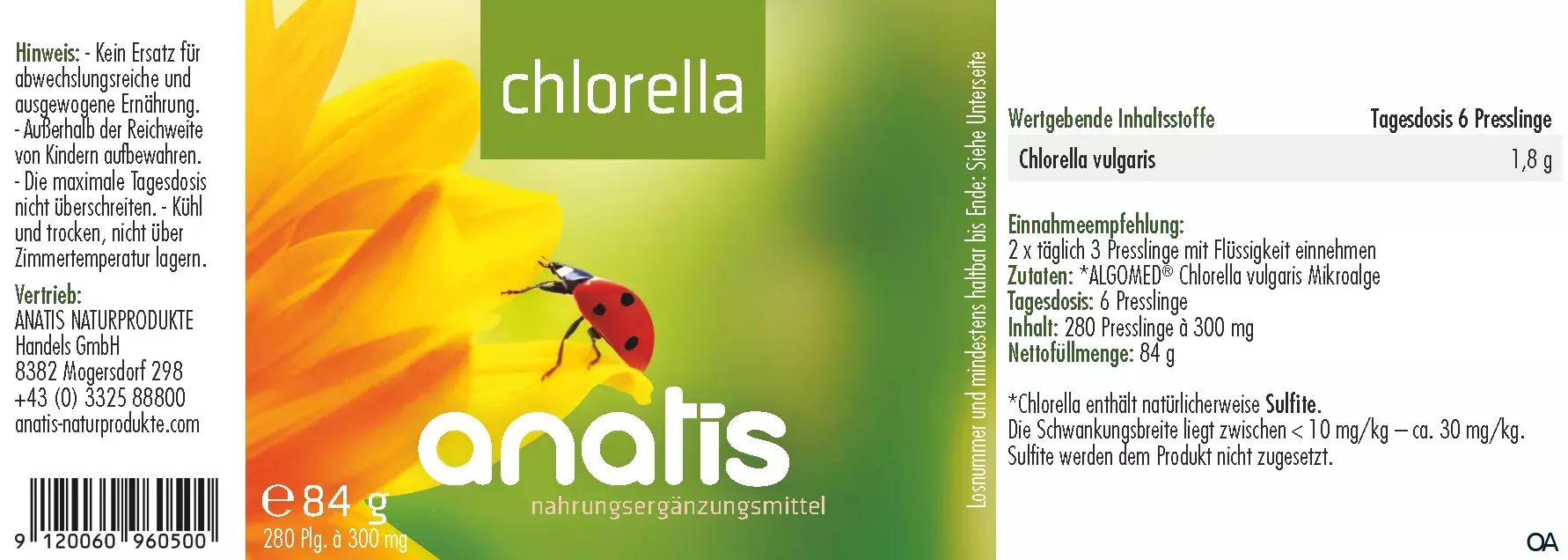 anatis Chlorella Presslinge ist ein Nahrungsergänzungsmittel mit Süßwasseralge (Chlorella vulgaris) aus geschlossenem Anbausystem.