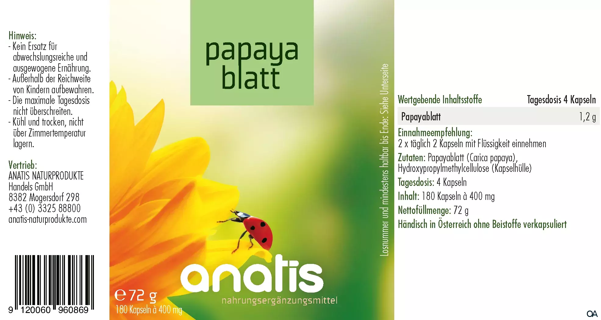 anatis Papayablatt Kapseln ist ein Nahrungsergänzungsmittel bestehend aus Papayablatt aus Wildsammlung.