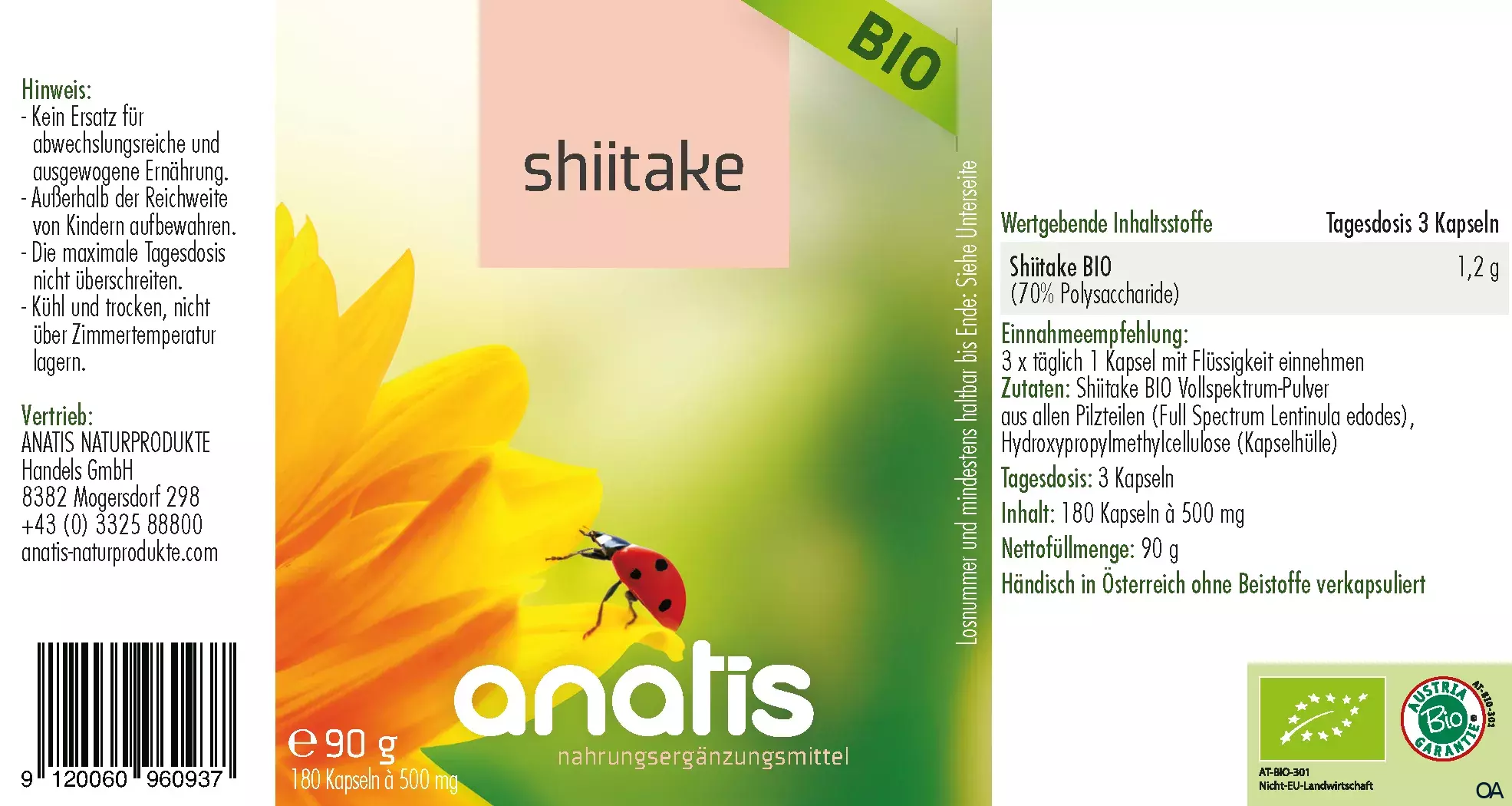 anatis Shiitake Pilz BIO Kapseln