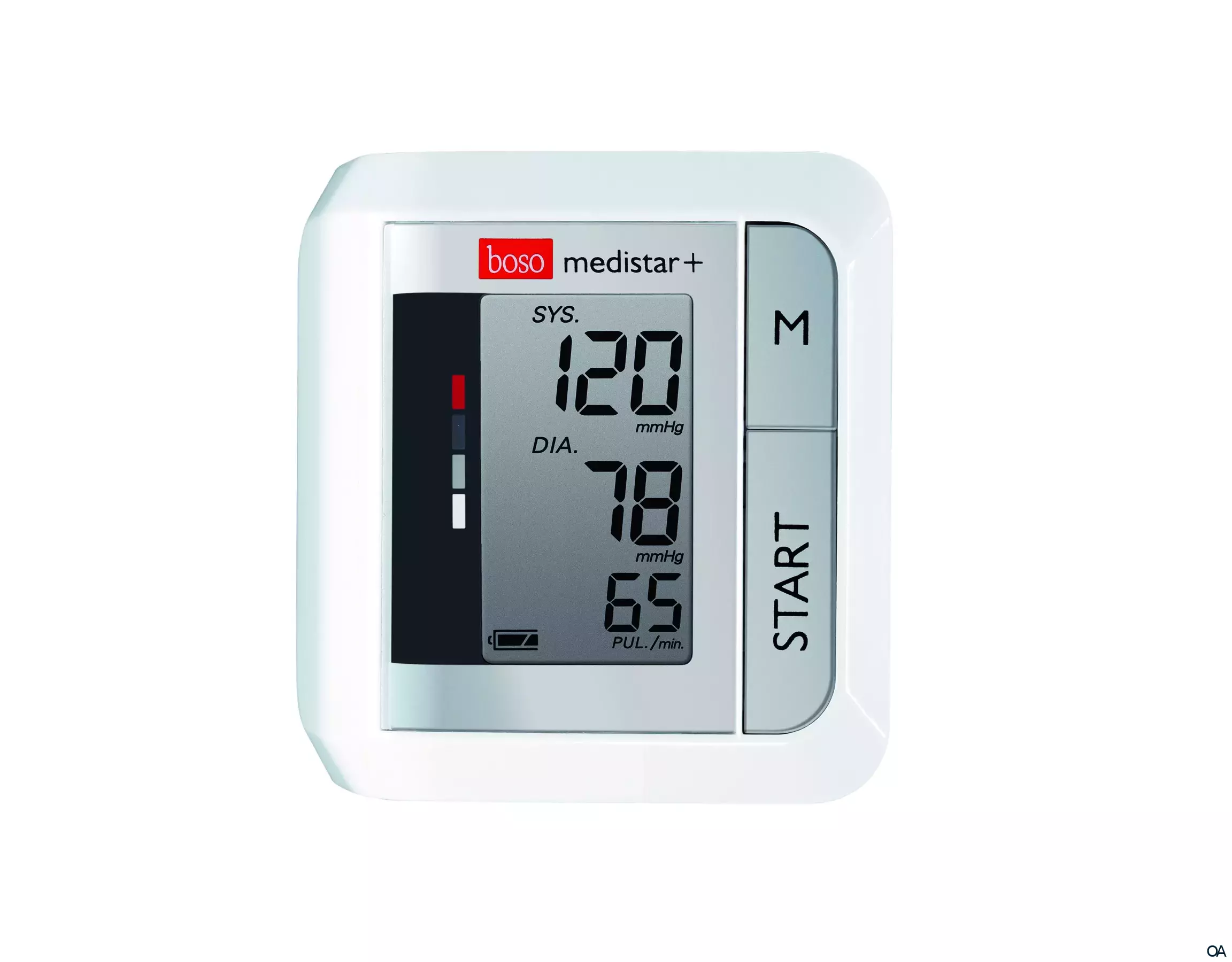 boso medistar+ - Das Handgelenk-Blutdruckmessgerät. Präzises Blutdruckmessen am Handgelenk (13,5 bis 21,5 cm) – klinisch validiert nach ESH. Mittelwertfunktion für die Beurteilung des Blutdrucks nach WHO. Anzeige von Herzrhythmusstörungen zum Erkennen von z.B. Vorhofflimmern.