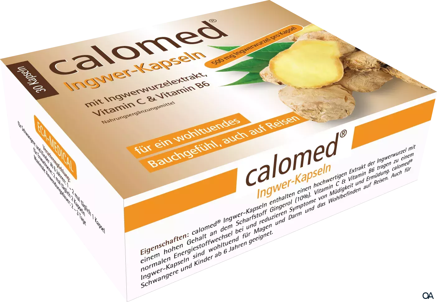 - Hinweise: calomed® Ingwer-Kapseln sind kein Ersatz für eine ausgewogene und abwechslungsreiche Enrährung, sowie eine gesunde Lebensweise. Empfohlene Tagesdosis nicht überschreiten. Trocken, lichtgeschützt und kühl lagern. Für Kinder unerreichbar aufbewahren.
