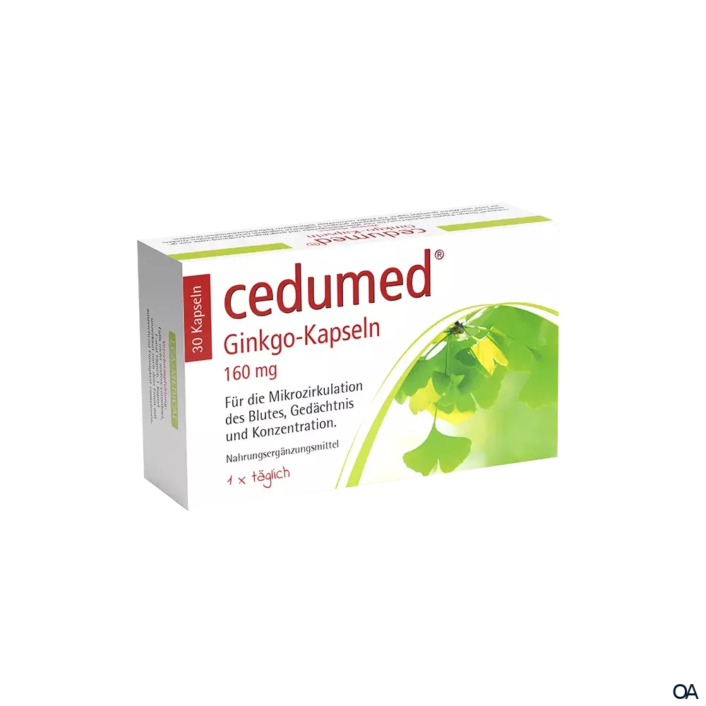 cedumed® enthält den Extrakt aus den Blättern des Ginkgobaumes (Ginkgo biloba) mit einem hohen standardisierten Gehalt an Ginkgo-Flavonoiden (mind. 24 %) und Terpenlactonen (mind. 6 %). Die wertvollen Inhaltsstoffe des Ginkgos unterstützen die Mikrozirkulation des Blutes und fördern die Durchblutung. Sie helfen auf natürliche Weise, die kognitiven Funktionen des Gehirns wie Gedächtnisleistung, Konzentration und Lernvermögen aufrechtzuerhalten.