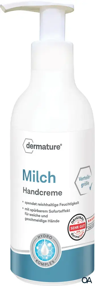 dermature Milch Handcreme spendet reichhaltige Feuchtigkeit mit spürbarem Soforteffekt für weiche und geschmeidige Hände.