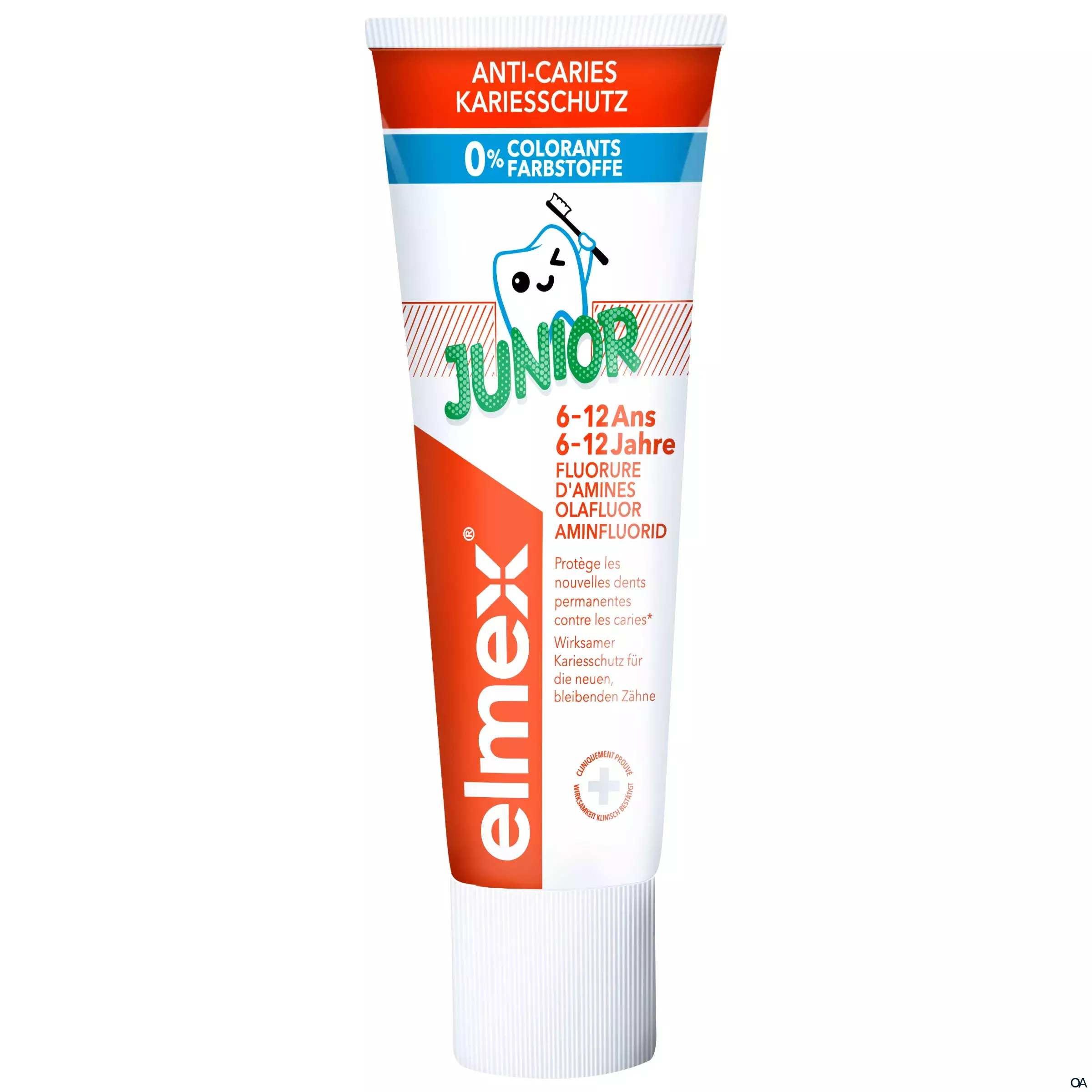 Im Alter von 6 bis 12 Jahren brechen die neuen bleibenden Zähne durch. elmex® JUNIOR Zahnpasta wurde speziell für dieses Alter entwickelt und eignet sich optimal zur täglichen Zahnpflege für 6 bis 12 Jährige. Das hochwirksame Aminfluorid (1400 ppm Fluorid) bietet wirksamen Langzeitschutz vor Karies. Kinder werden durch den angenehm milden Geschmack zum regelmäßigen Zähneputzen motiviert. Damit sorgt elmex® JUNIOR Zahnpasta für eine gründliche Reinigung der neuen bleibenden Zähne.