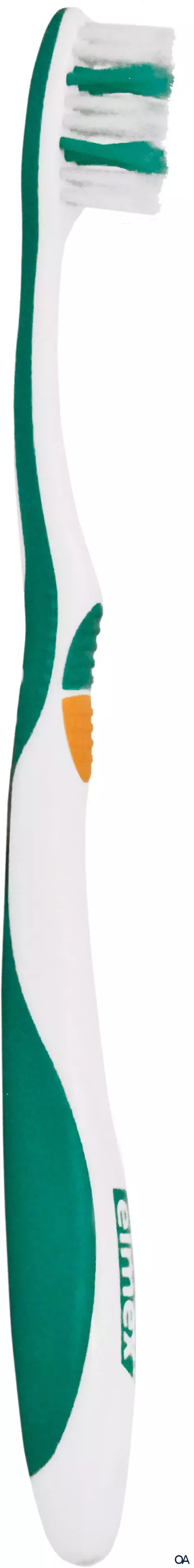 Freiliegende Zahnhälse und schmerzempfindliche Zähne benötigen eine besonders weiche Zahnbürste mit feinen Borsten. Die elmex® SENSITIVE PROFESSIONAL Zahnbürste zeichnet sich besonders durch samtweiche, konische Borsten aus. Die höherstehenden X-Borsten ermöglichen eine gründliche Reinigung bis weit in die Interdentalräume. Auch freiliegende Zahnhälse werden schonend und gründlich gereinigt. Der kleine, weich ummantelte Bürstenkopf erleichtert das Reinigen der schwer erreichbaren Backenzähne und minimiert das Verletzungspotenzial in der Mundhöhle. Durch den weichen Daumenstopp erhält man Sicherheit vor dem Abrutschen auch im nassem Zustand.