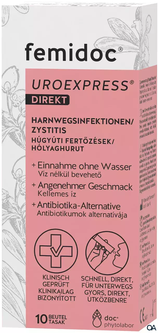 - Zur oralen Verwendung: Die empfohlene Tagesdosis nicht überschreiten. femidoc® UROEXPRESS® DIREKT Beutel können ohne Wasser eingenommen werden.