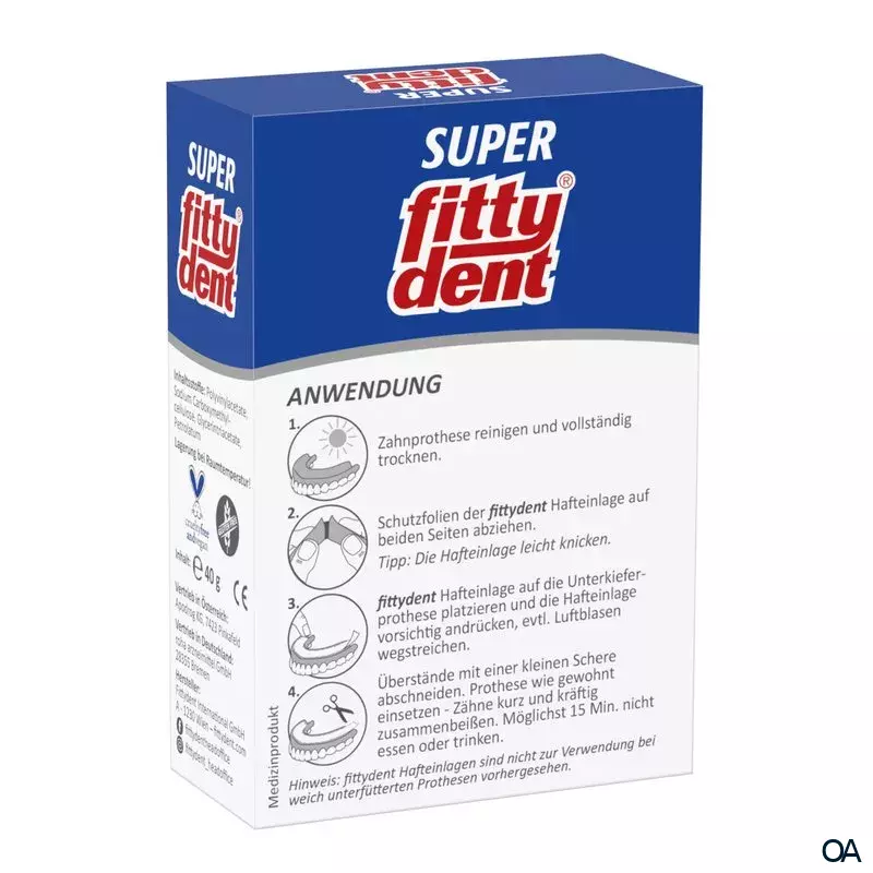 fittydent super Hafteinlagen garantieren einen sicheren und festen Halt der Unterkieferprothese auch in den schwierigsten Fällen der Zahnprothetik.