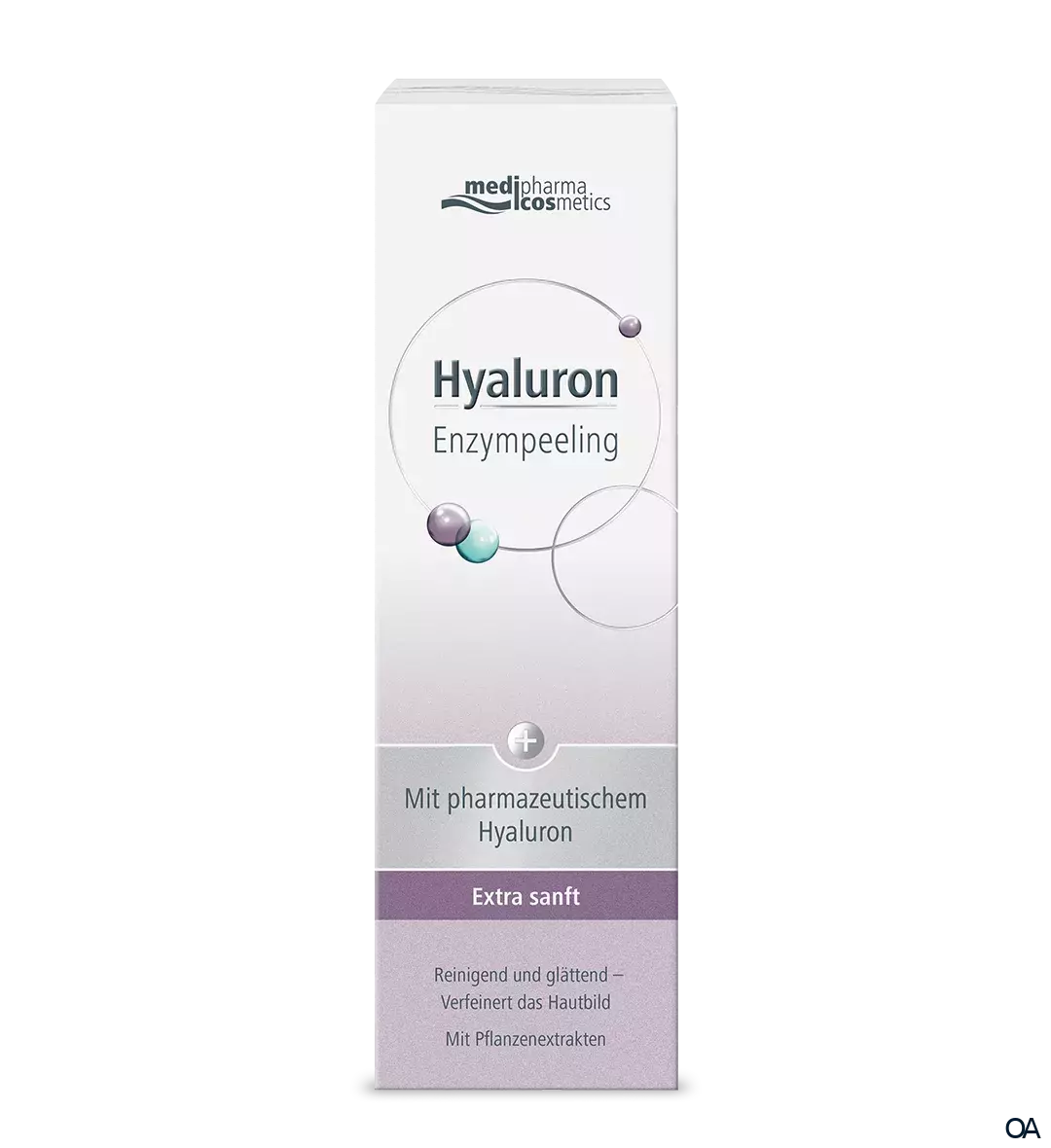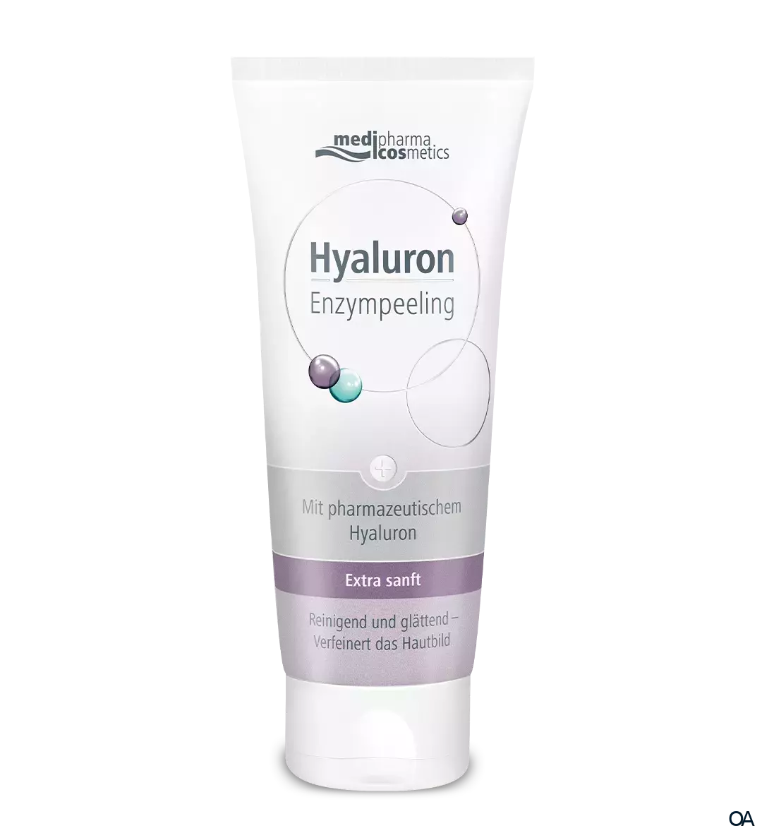 Das medipharma cosmetics Hyaluron Enzympeeling mit pharmazeutischem Hyaluron und Pflanzenextrakten ist extra sanft. Reinigend und glättend – Verfeinert das Hautbild.