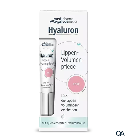 Die medipharma cosmetics Hyaluron Lippen-Volumenpflege Rosé mit quervernetzter Hyaluronsäure lässt die Lippen voluminöser erscheinen.