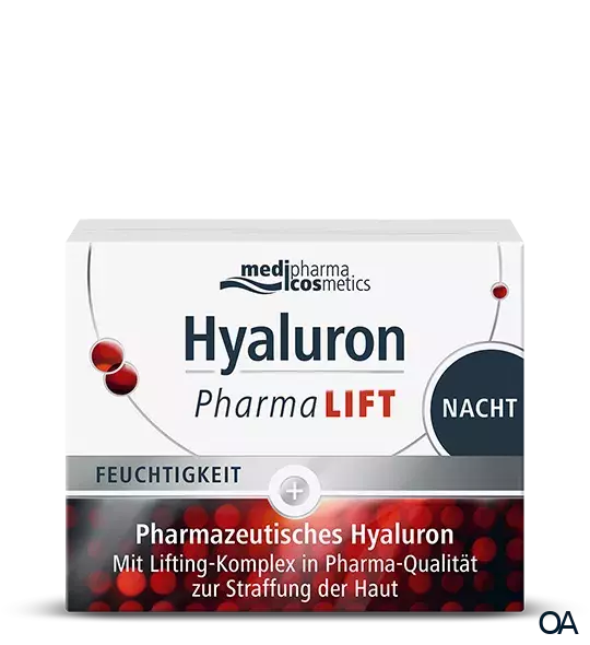 Die medipharma cosmetics Hyaluron Pharma LIFT Nacht mit pharmazeutischem Hyaluron eignet sich zur Straffung der Haut und Vitamin E zur Regeneration der Haut. Unterstützt die Sauerstoffaufnahme der Haut, belebt sie und schenkt ihr neue Vitalität.